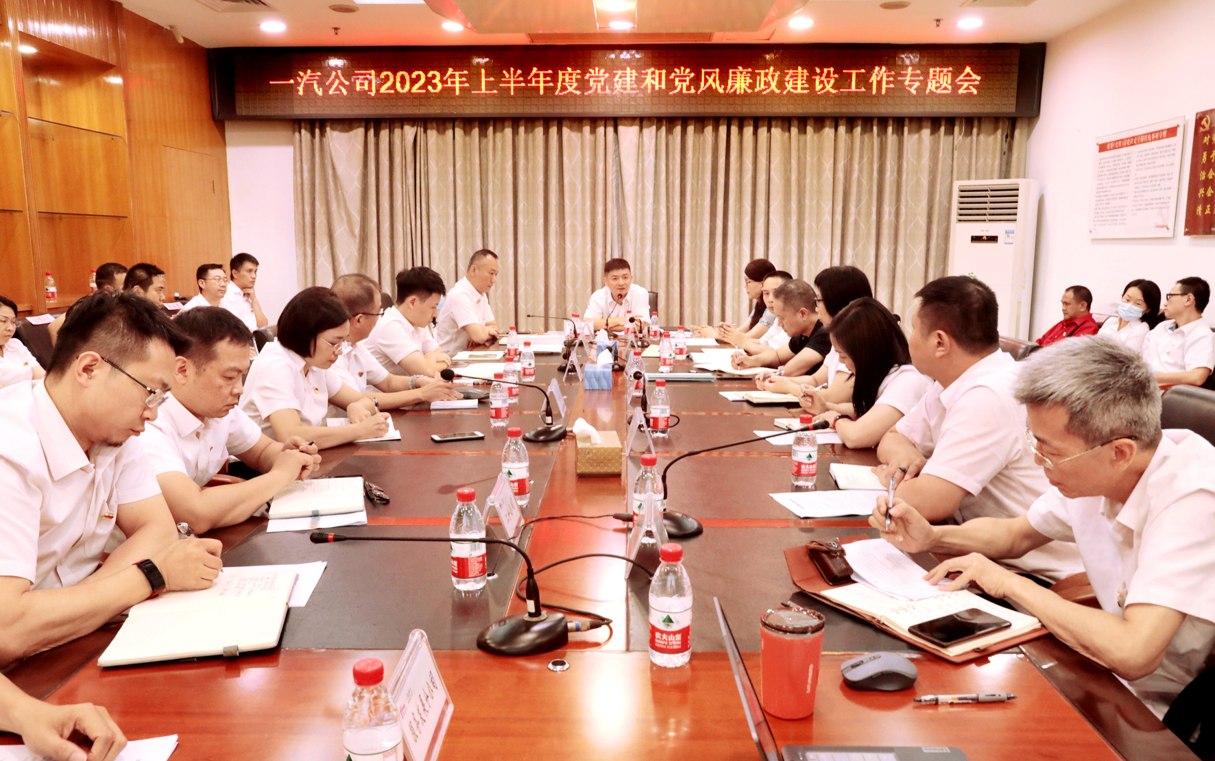6月29日下午,公司召开2023年上半年度党建和党风廉政建设工作专题会。公司全体党委委员、纪委委员出席会议,公司职能部门负责人、属下党总支部、党支部书记参加会议。