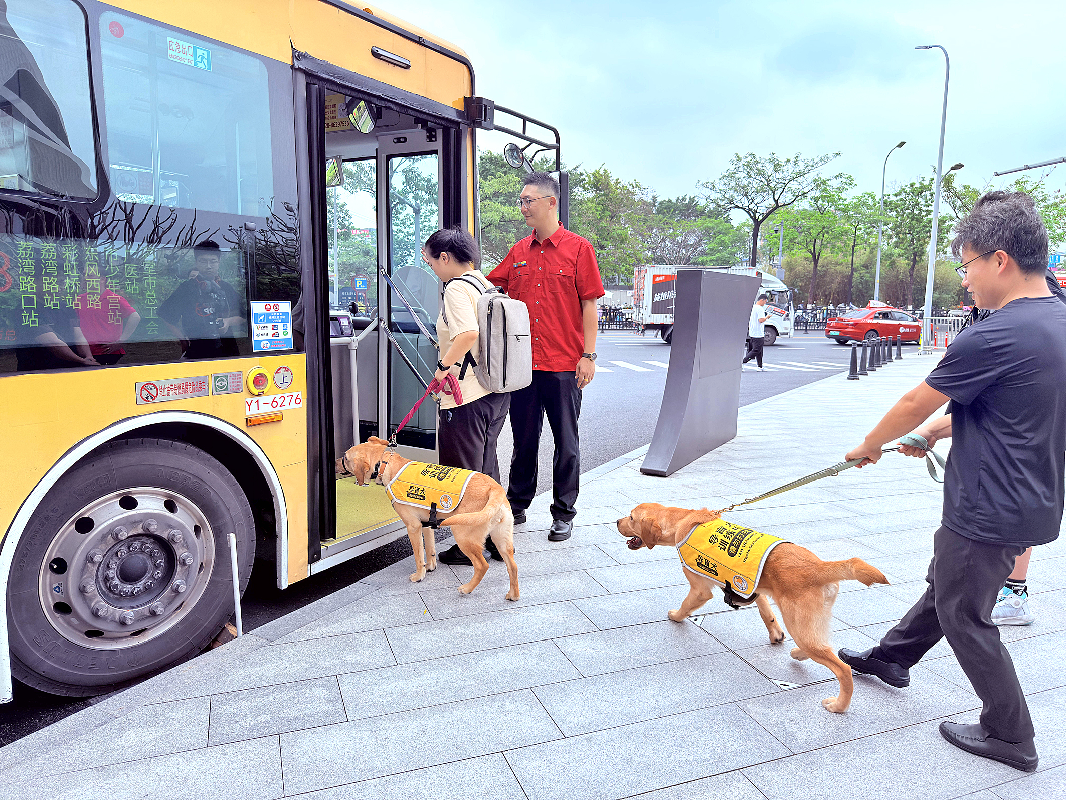 活动现场,导盲犬公益市集活动也热闹开场。公司过宣传海报、折页,以及充满趣味的导盲犬乘车礼仪问答互动等多种方式,普及导盲犬乘车等知识。一星级全国“青年文明号”公交车长温子杰示范遇到导盲犬上车时的标准服务操作。他表示:“工作中经常遇到带导盲犬乘车的视障乘客,或是处于训练阶段的导盲犬,我们严格按照规范提供服务,主动询问需求、进行温馨提示广播。在即将到来的十五运会和残特奥会期间,我们将做好公交兜底服务工作,确保赛事期间残障人士能够顺利、便捷出行。”