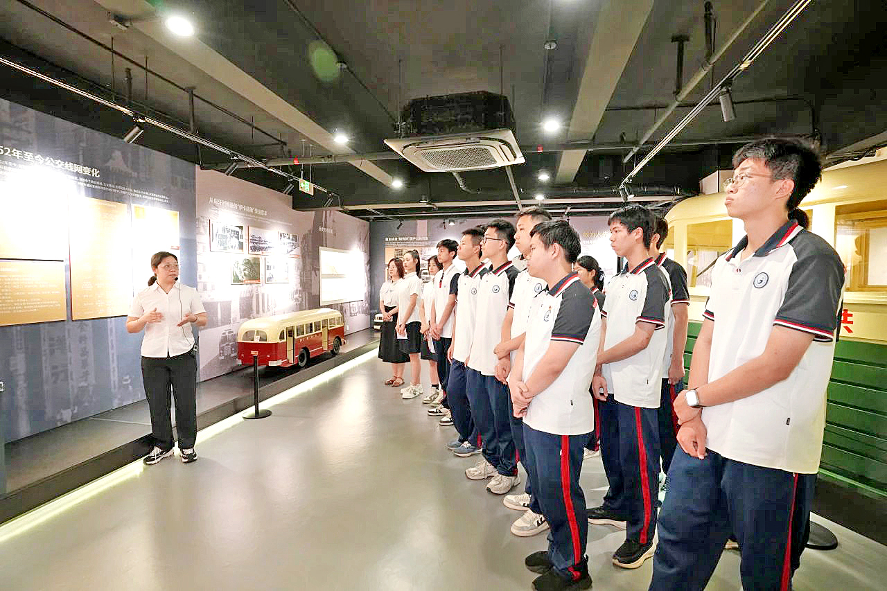 终点站的公交文化展厅,将思政教育推向高潮。从木炭车到新能源车的迭代展陈,见证了广州公共交通从“人力作业”迈向“智慧出行”的蝶变。在宣讲员的引导下,青年学子通过实物展品触摸城市发展轨迹,感悟交通变革背后的奋斗史诗。