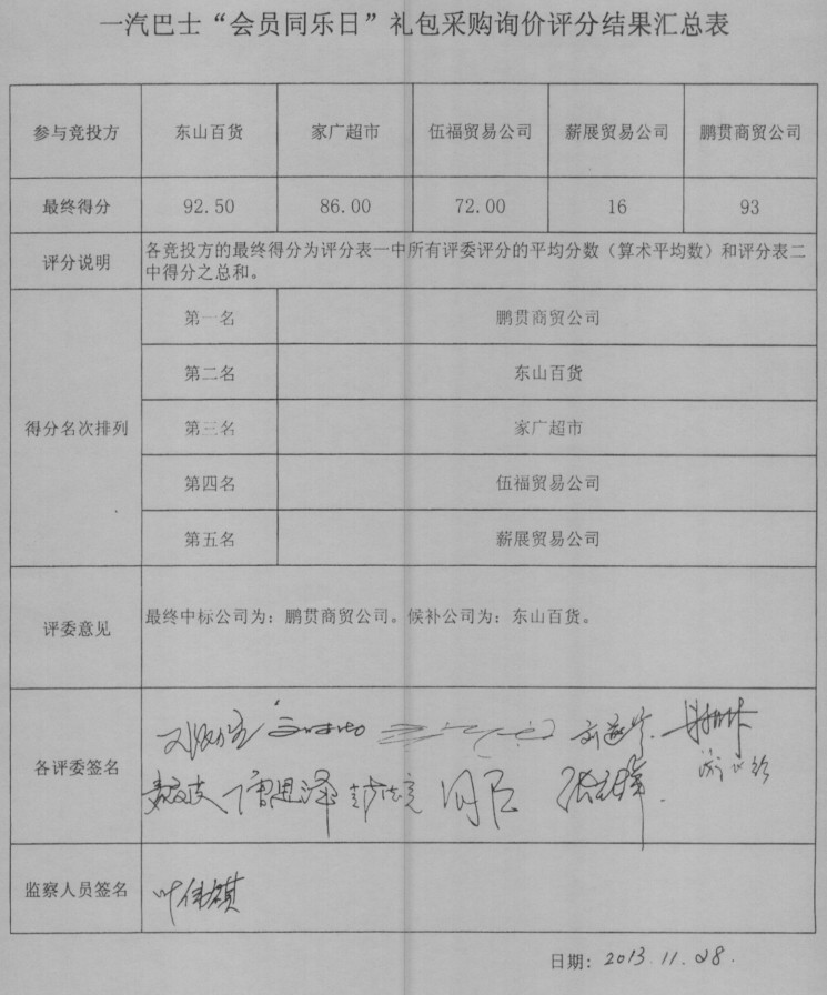 网上赌博 “会员同乐日”礼包采购询价评分结果汇总表