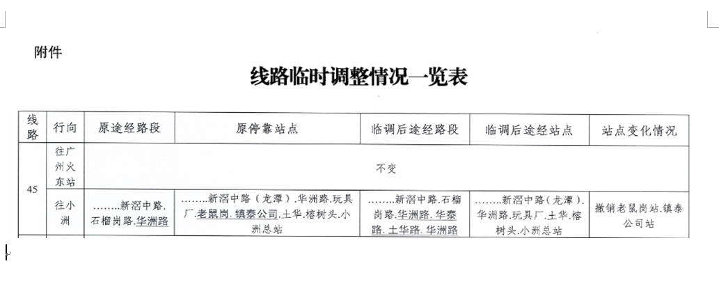 一、我司45路线临时取消通行华州路(土华段),临时绕行土华路路段后接原线行驶,具体调整情况详见附件。